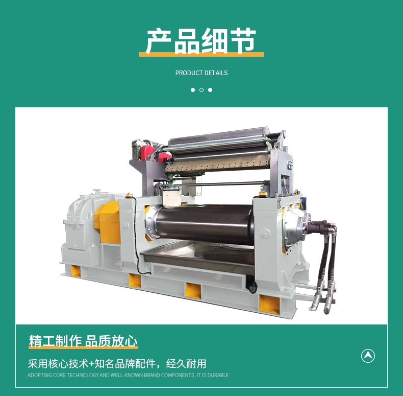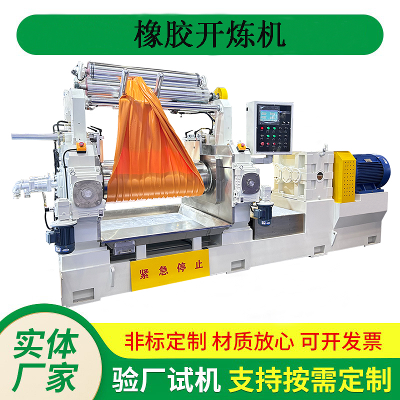 主要用于橡膠的塑煉、混煉、熱煉、壓片等工藝過程。通過兩個相向旋轉(zhuǎn)的輥筒對橡膠進(jìn)行擠壓、剪切和混合,以達(dá)到塑化和均勻混合的效果,從而提高橡膠制品的品質(zhì)。