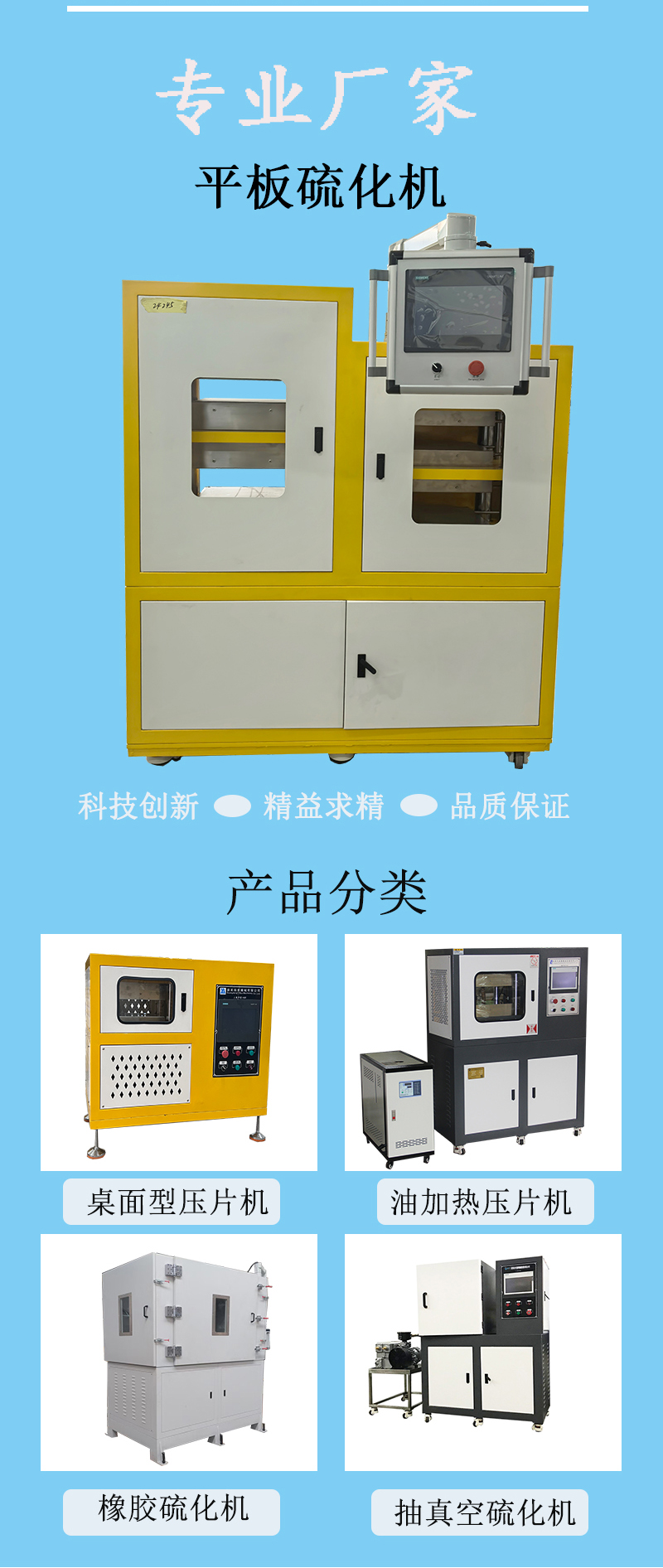 壓片機又名平板硫化機,主要用于硫化平型膠帶(如輸送帶、傳動帶,簡稱平帶),屬于液壓機械,平板硫化機的主要功能是提供硫化所需的壓力和溫度。壓力由液壓系統通過液壓缸產生,溫度由加熱介質(通常為蒸汽、導熱油等,過熱水也有用)所提供。輸送帶平板硫化機主要用于硫化平型膠帶、膠板、高分子等平板類產品的成型,它具有熱板單位面積壓力大,設備操作可靠、維修量少等優點。溫度由加熱介質(通常為蒸汽、導熱油等)所提供。 平帶平板硫化機按機架的結構形式主要可分為柱式平帶平板硫化機和框式平帶平板硫化機兩類;按工作層數可有單層和多層之分:按液壓系統工作介質則可有油壓和水壓之分。